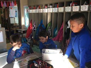 Writing: We learned about the structure of a non-fiction teaching book. We learned about how to begin your by by grabbing the readers attention with a sound. Next you write three facts and end by wrapping up your book. This is a huge jump from our previous work in narrative writing and the kids are exited for the challenge. It took us a few days to work on a book! We will continue to build stamina with this.